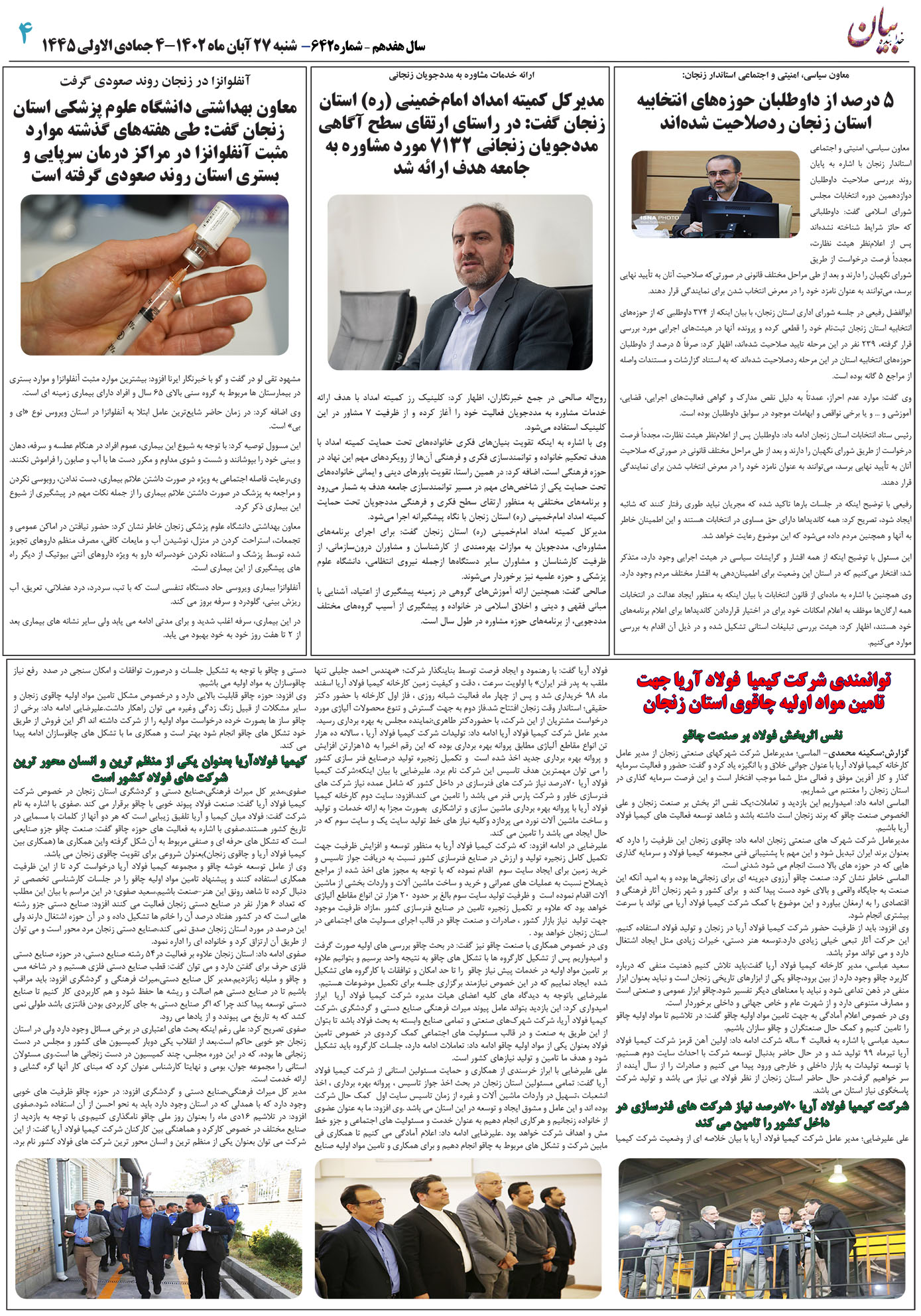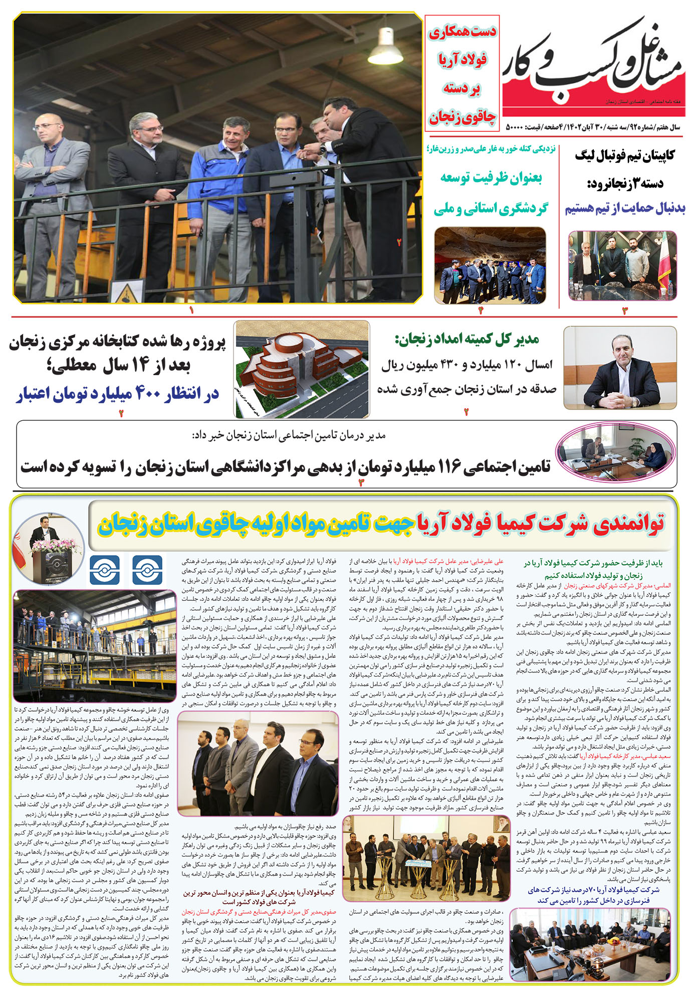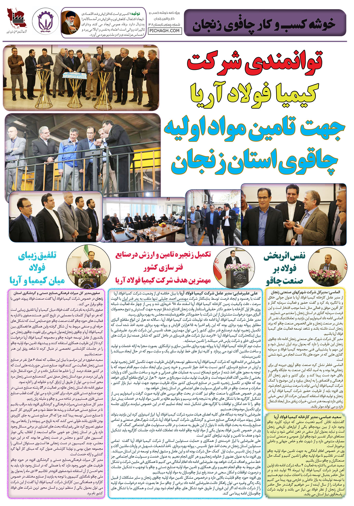 In line with the implementation of the development plan of Kimia Foulad Aria in the third site of this complex in Zanjan province and creating the capacity to supply raw materials to knife makers in Zanjan province, a visit to Kimia Foulad Aria factory with the presence of the general manager of cultural heritage, handicrafts and tourism of Zanjan province and the company’s managing director industrial towns of Zanjan province and the deputy minister of industry, mining and trade of Zanjan province and the head of the union and association of knife makers of Zanjan province, and it was decided to hold joint meetings with the union and association of knife makers to investigate this need.